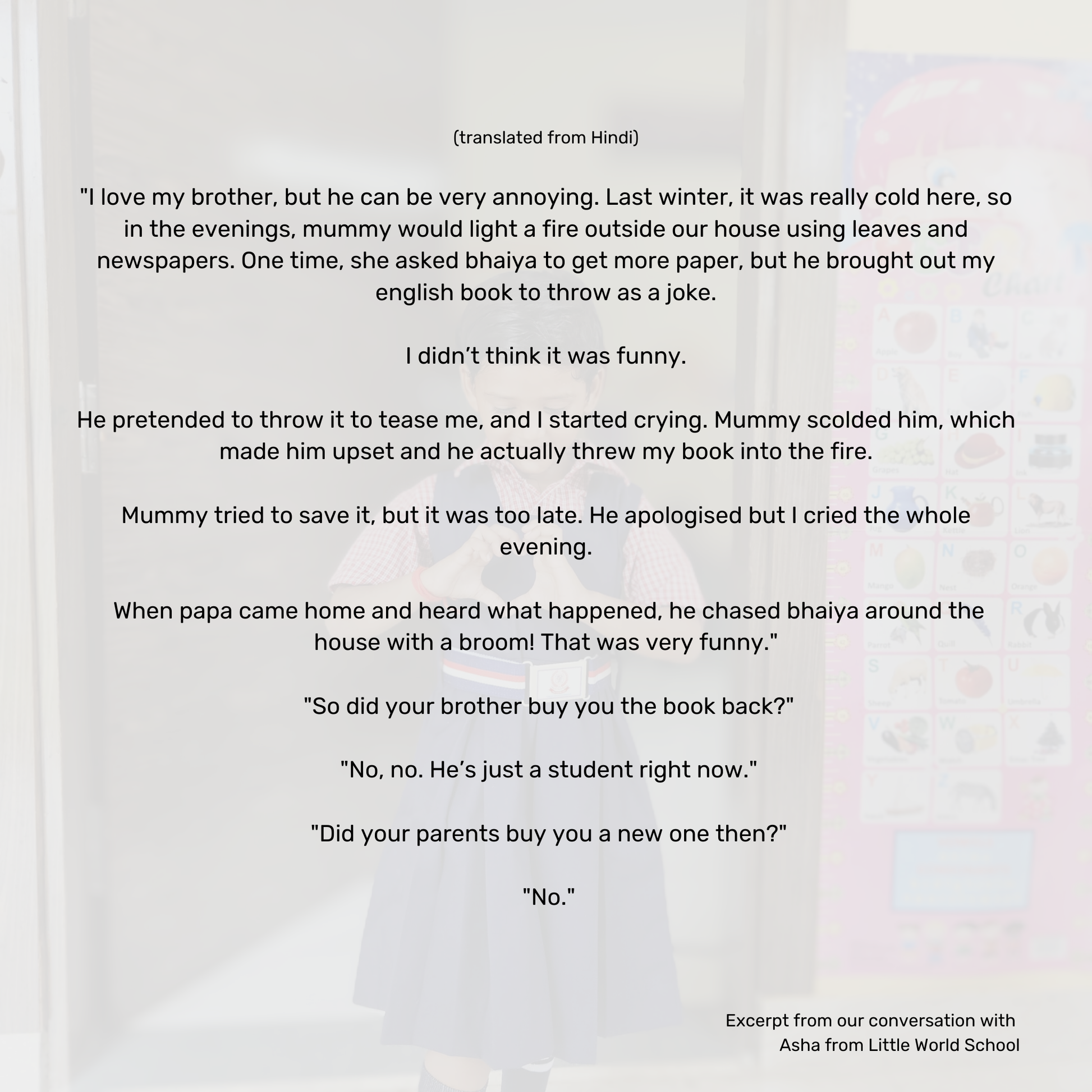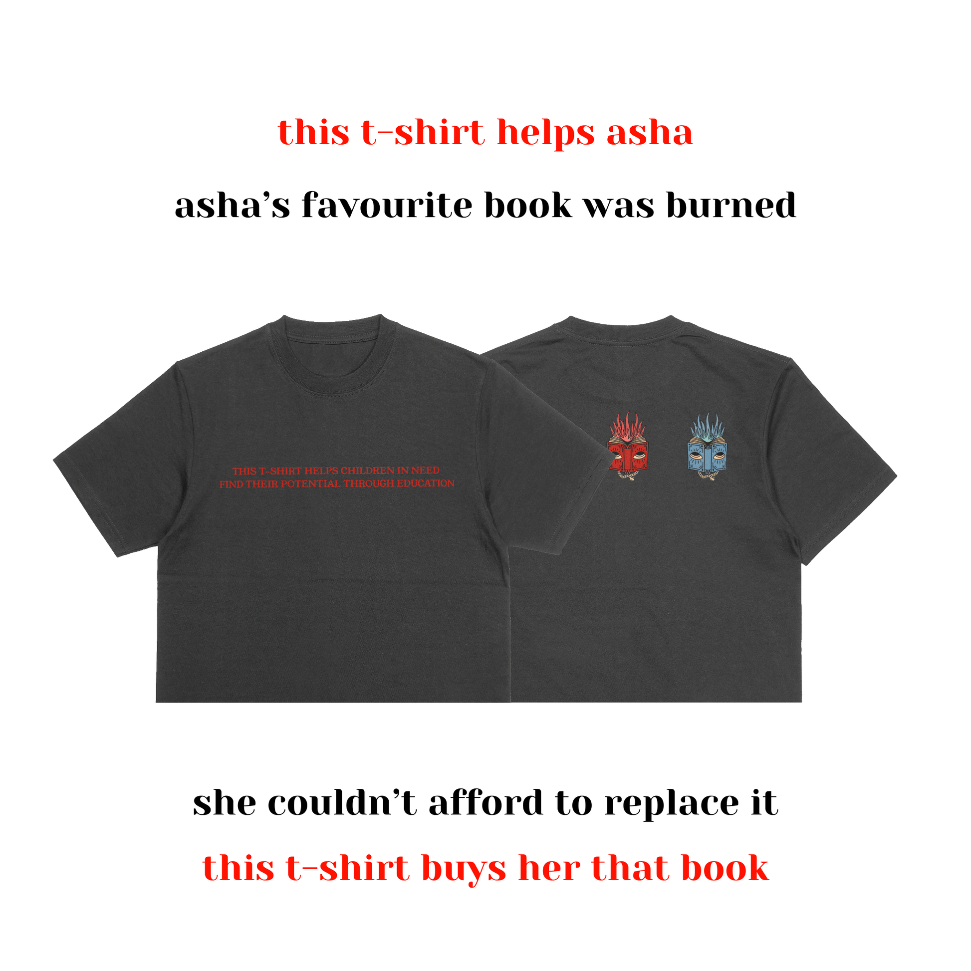 Once we raise our target Rs. 5,000 (via 10 t-shirts*) for books and stationary for Asha and other students at LWS, this t-shirt will go out of stock.